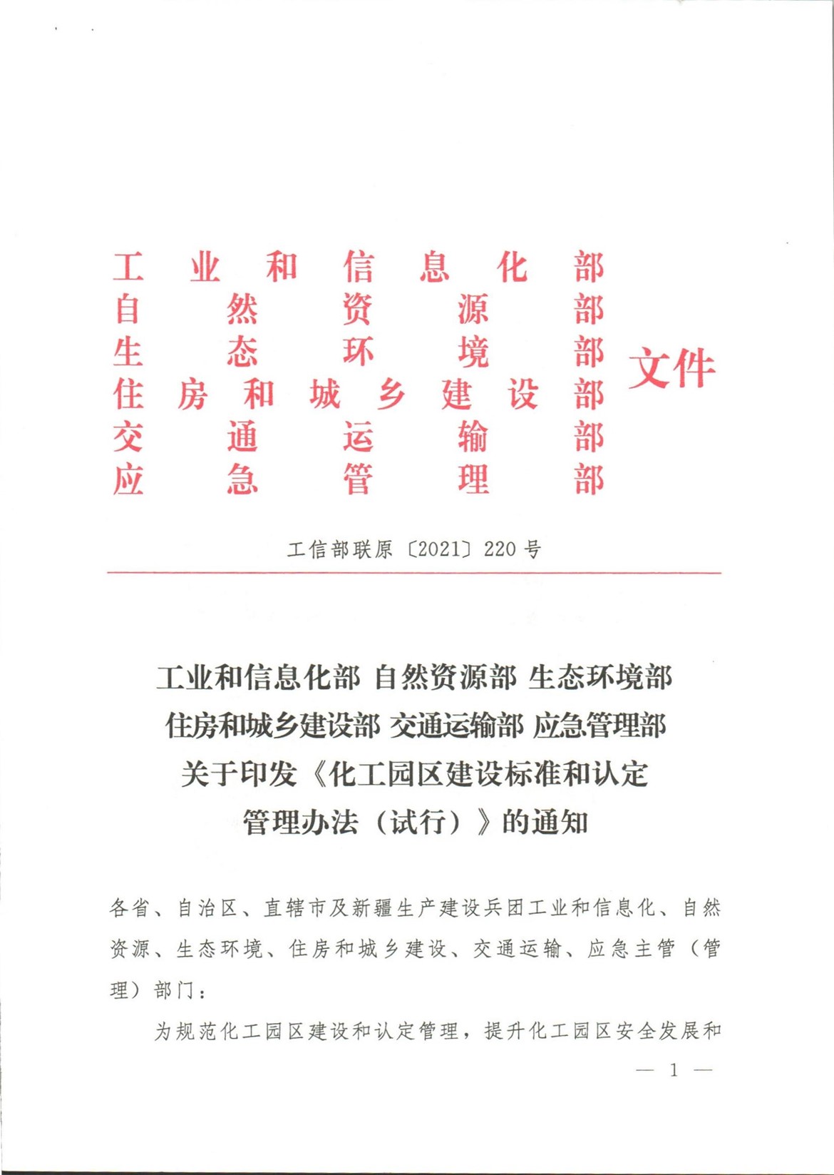 日前,工業和信息化部、自然資源部、生態環境部、住房和城鄉建設部、交通運輸部、應急管理部聯合印發《化工園區建設標準和認定管理辦法(試行)》(工信部聯原〔2021〕220號,下稱《辦法》),隨后工業和信息化部對《辦法》進行了解讀?!掇k法》的出臺為進一步規范化工園區建設和實施認定管理,提升化工園區安全生產和綠色發展水平提供了政策保障。