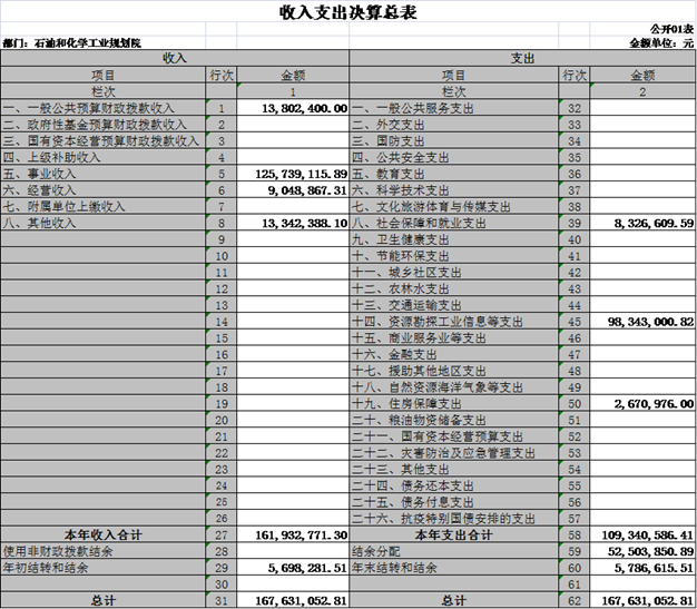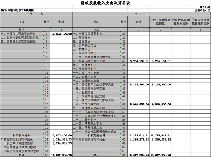 根據(jù)《中華人民共和國(guó)預(yù)算法》及其實(shí)施條例的相關(guān)規(guī)定規(guī)定,按照國(guó)資委2021年度所屬預(yù)算單位決算公開工作方案的要求,現(xiàn)將我院2021年度部門決算及相關(guān)內(nèi)容公示如下: