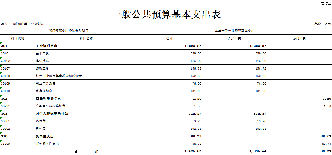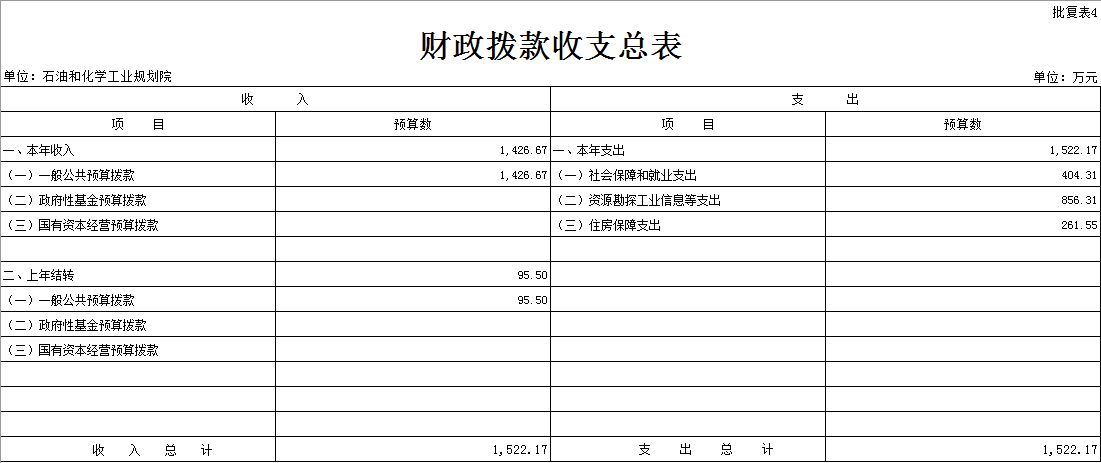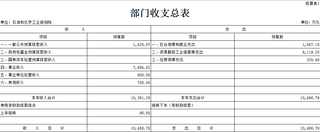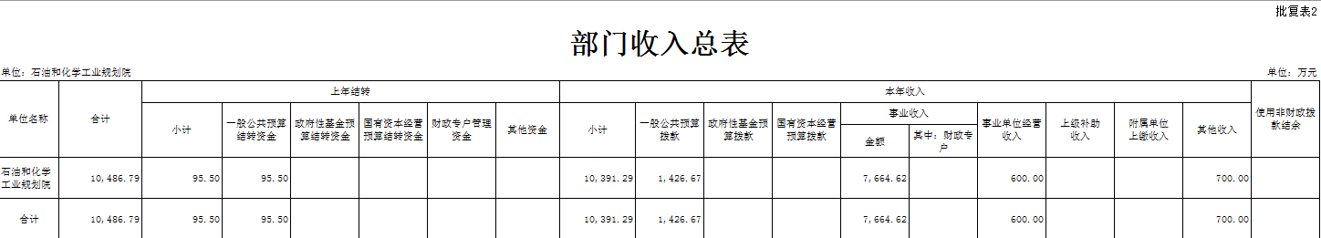 石油和化學工業(yè)規(guī)劃院部門預算