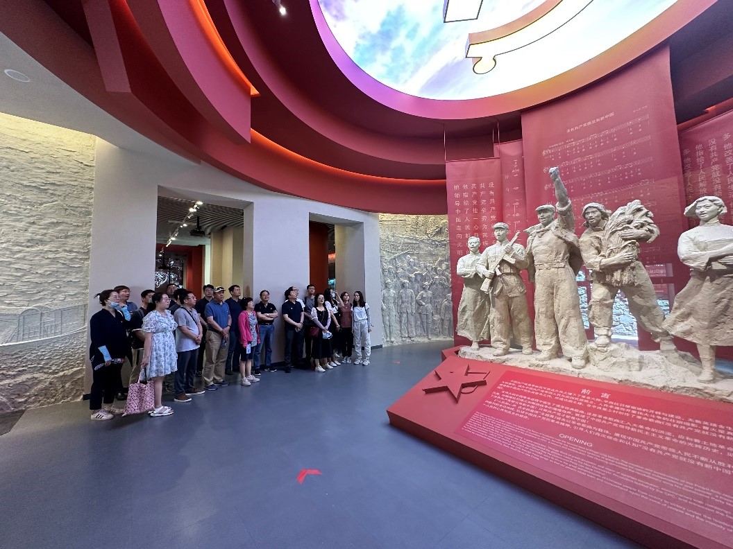 按照規(guī)劃院黨委主題教育工作安排,7月6日,院黨委書記、院長李君發(fā)帶領(lǐng)工程規(guī)劃處黨支部和財務(wù)處黨支部赴全國愛國主義教育示范基地--沒有共產(chǎn)黨就沒有新中國紀念館,開展“人民的心聲 歷史的旋律”主題教育活動。紀念館位于北京市房山區(qū)霞云嶺鄉(xiāng)堂上村,紀念館分為序廳、四個主題部分、“不忘初心”部分和結(jié)束語。“黨的創(chuàng)建和大革命洪流中的歌聲”“土地革命風暴中的歌聲”“為全民族抗戰(zhàn)吶喊的歌聲”“循著解放戰(zhàn)爭進程的歌聲”四個主題部分,著重呈現(xiàn)了革命時期涌現(xiàn)的歌曲,串起革命歷史和精神譜系。“不忘初心”部分,集中展示了新中國成立以來涌現(xiàn)的經(jīng)典歌曲,力求讓觀眾伴著歌聲重溫百年黨史,生動闡釋“沒有共產(chǎn)黨就沒有新中國”的人民心聲和歷史旋律。紀念館利用藝術(shù)品創(chuàng)作、大型投影、場景復原、音像展示等多種方式呈現(xiàn)主題歌曲15首、一般展示歌曲71首,以及84個黨史故事、123首多媒體鏈接歌曲和資料,傾力營造“沉浸式”觀展體驗。