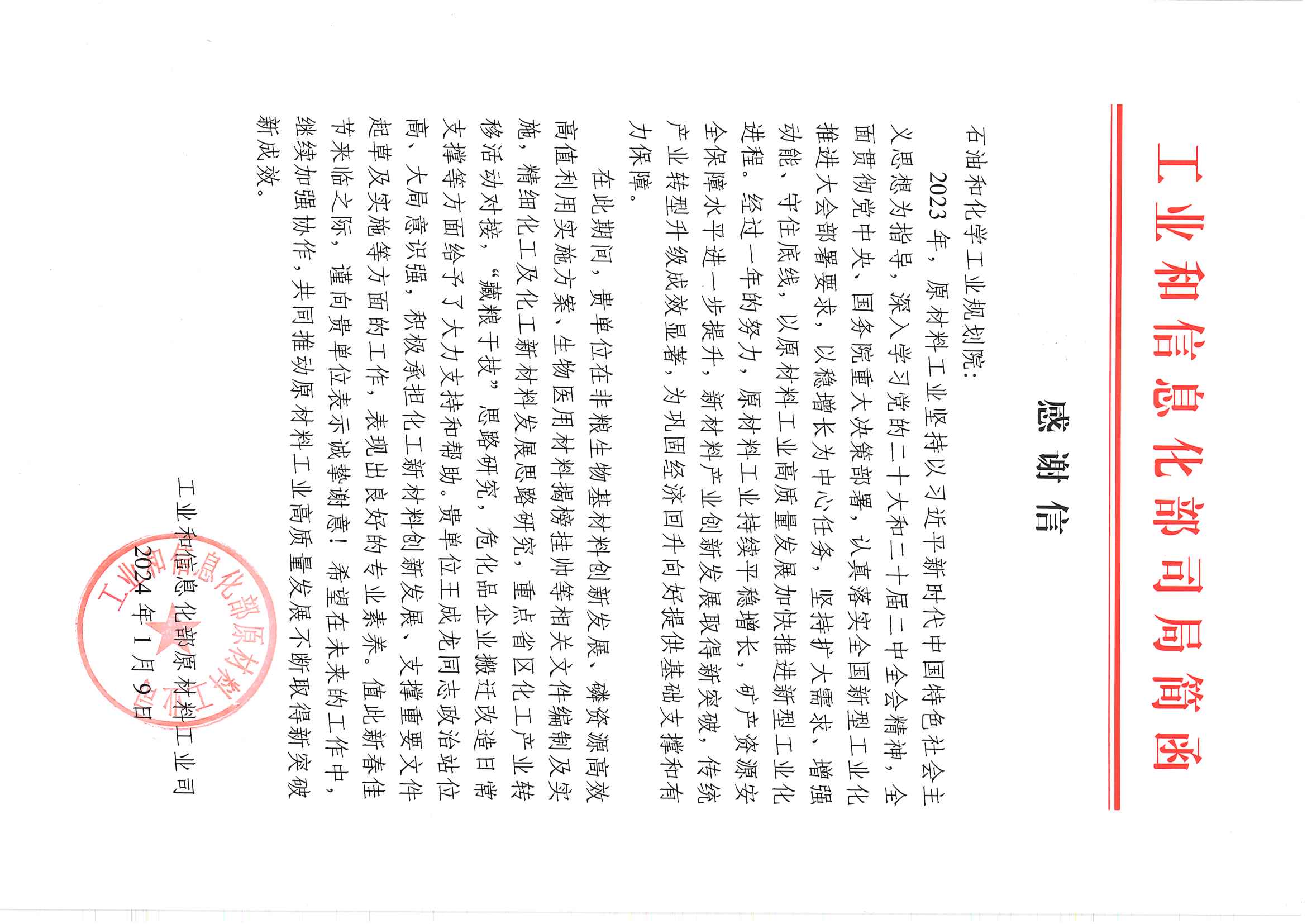 2023年是全面貫徹落實(shí)黨的二十大精神的開局之年,也是我國經(jīng)濟(jì)發(fā)展的轉(zhuǎn)折之年。一年來,石油和化學(xué)工業(yè)規(guī)劃院積極發(fā)揮國家智庫的作用,支撐工業(yè)和信息化部原材料工業(yè)司在石化化工行業(yè)穩(wěn)增長、精細(xì)化工及化工新材料創(chuàng)新發(fā)展、磷資源高效高值利用、非糧生物基材料創(chuàng)新發(fā)展、生物醫(yī)用材料揭榜掛帥、重點(diǎn)省區(qū)化工產(chǎn)業(yè)轉(zhuǎn)移對接、危化品企業(yè)搬遷改造等方面開展了一系列工作,獲得了工業(yè)和信息化部原材料工業(yè)司的高度認(rèn)可。