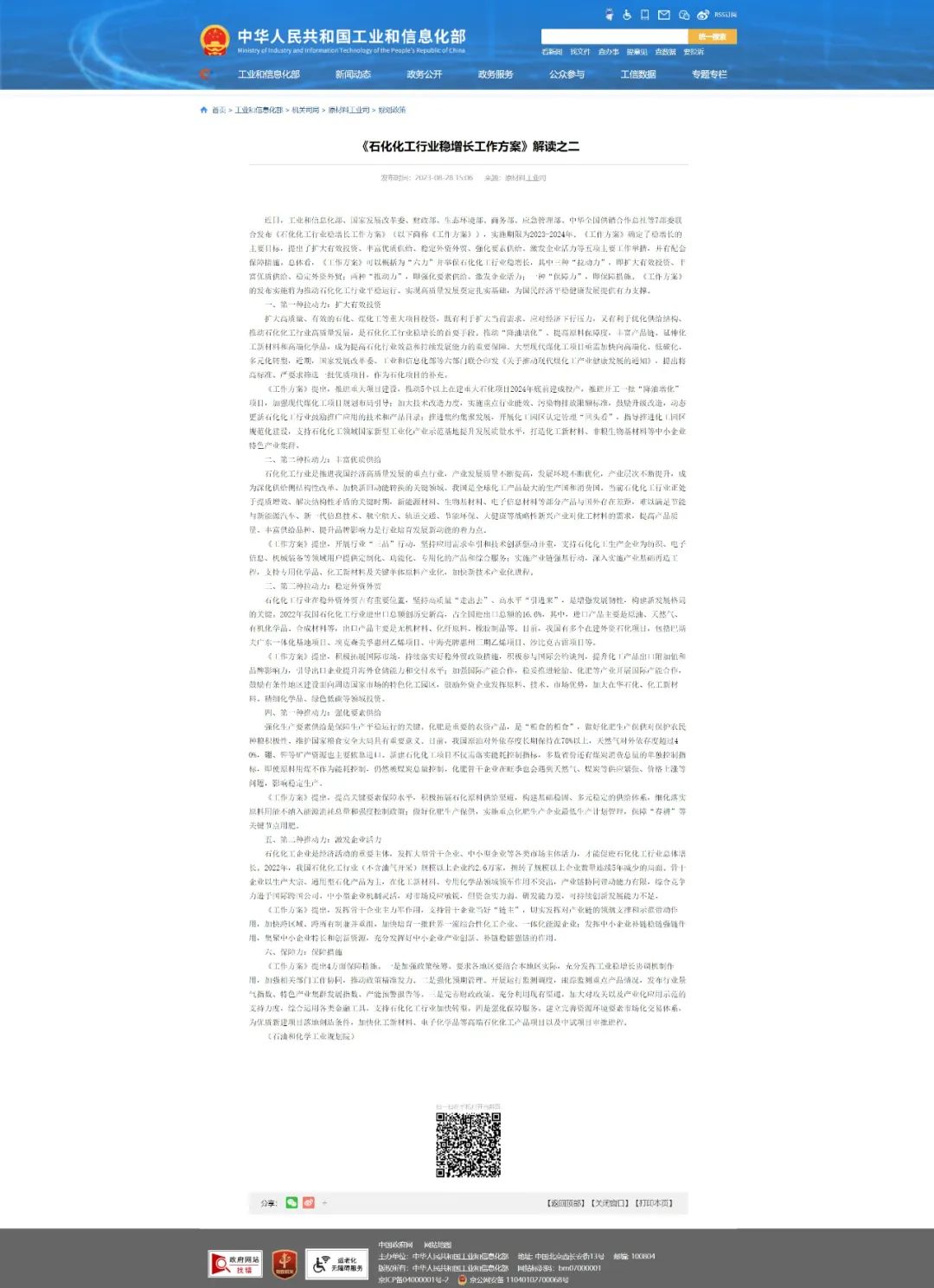 近日,工業和信息化部、國家發展改革委、財政部、生態環境部、商務部、應急管理部、中華全國供銷合作總社等7部委聯合發布《石化化工行業穩增長工作方案》(以下簡稱《工作方案》),實施期限為2023-2024年?!豆ぷ鞣桨浮反_定了穩增長的主要目標,提出了擴大有效投資、豐富優質供給、穩定外資外貿、強化要素供給、激發企業活力等五項主要工作舉措,并有配套保障措施??傮w看,《工作方案》可以概括為“六力”并舉保石化化工行業穩增長,其中三種“拉動力”,即擴大有效投資、豐富優質供給、穩定外資外貿;兩種“推動力”,即強化要素供給、激發企業活力;一種“保障力”,即保障措施?!豆ぷ鞣桨浮返陌l布實施將為推動石化化工行業平穩運行、實現高質量發展奠定扎實基礎,為國民經濟平穩健康發展提供有力支撐。