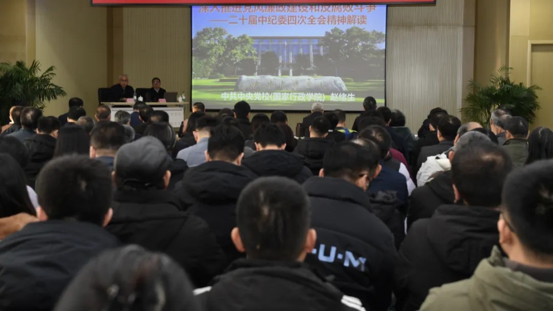 會(huì)上,中共中央黨校(國(guó)家行政學(xué)院)教授趙緒生作《深入推進(jìn)黨風(fēng)廉政建設(shè)和反腐敗斗爭(zhēng)——二十屆中央紀(jì)委四次全會(huì)解讀》輔導(dǎo)報(bào)告,介紹了二十屆中央紀(jì)委四次全會(huì)總體概況,宣貫了習(xí)近平總書記關(guān)于黨的自我革命的重要思想、改革精神和嚴(yán)的標(biāo)準(zhǔn)正風(fēng)肅紀(jì)反腐等內(nèi)容。