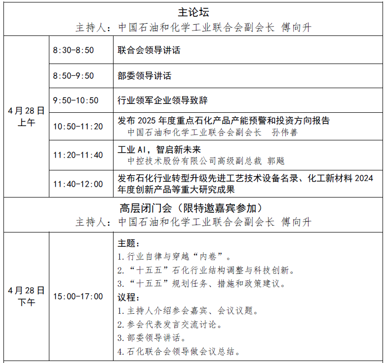 2025石化產(chǎn)業(yè)發(fā)展大會(huì)議程安排(更新中)