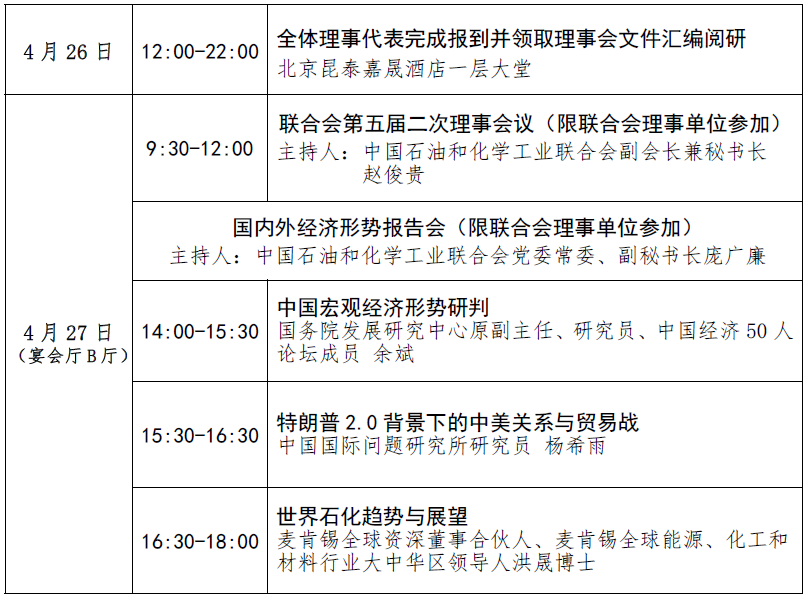 中國(guó)石油和化學(xué)工業(yè)聯(lián)合會(huì)第五屆二次理事會(huì)議議程(更新中)