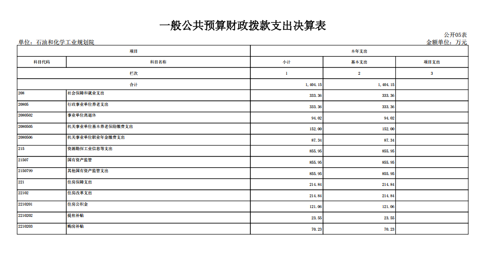 2024年度財政撥款支出1404.15萬元,較2023年撥款減少112.13萬元。具體情況如下: