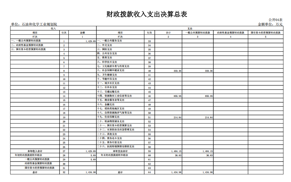 根據(jù)《中華人民共和國預(yù)算法》及其實施條例的相關(guān)規(guī)定規(guī)定,按照國資委2024年度所屬預(yù)算單位決算公開工作方案的要求,現(xiàn)將我院2024年度部門決算及相關(guān)內(nèi)容公示如下: