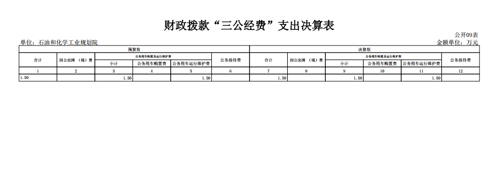 2024年決算實際撥款為:1.5萬元,其中:因公出國費0.00萬元、公務(wù)用車運行費1.5萬元、公務(wù)接待費0.00萬元。預(yù)決算撥款持平。
