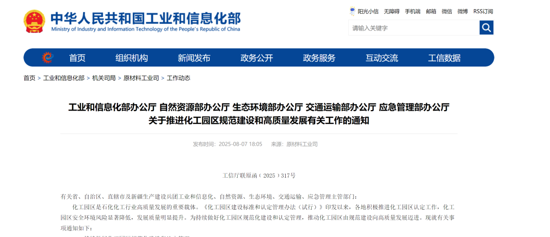 (二)嚴格化工園區認定管理。有關省級化工園區認定管理機構要按照工業和信息化部反饋的整改意見,于10月30日前修訂完善省級細則。修訂工作完成前,暫停認定化工園區;對已認定的化工園區,要按照修訂后的省級細則,于2025年底前完成復核。