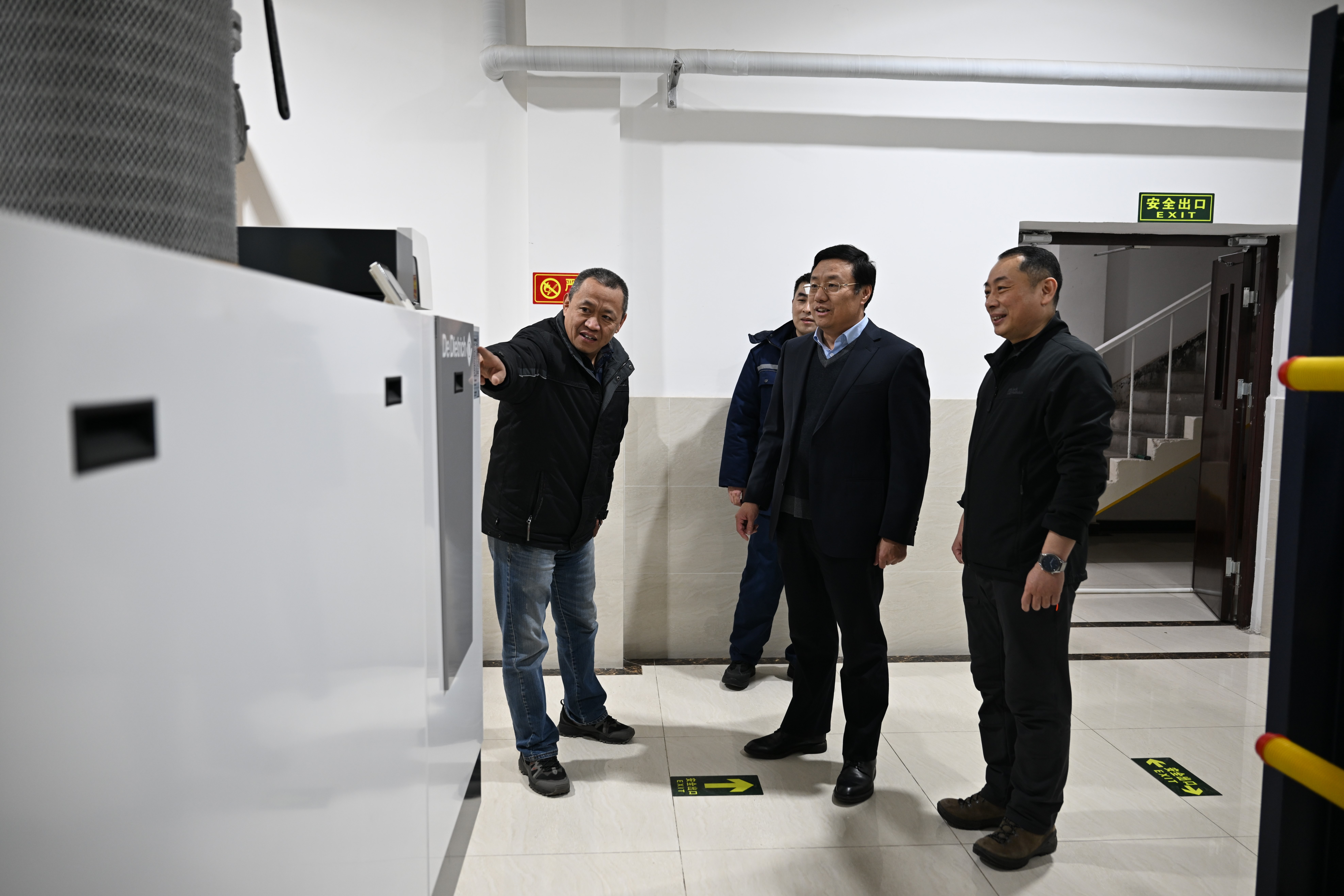 在鍋爐房,白雪松院長助理(右二)看望維修師傅
