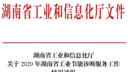 2021年1月13日,湖南省工業和信息化廳發出《關于2020年湖南省工業節能診斷服務工作情況通報》(以下簡稱《通報》),并抄送工業和信息化部節能與綜合利用司。《通報》總結2020年湖南省的工業節能診斷服務工作。